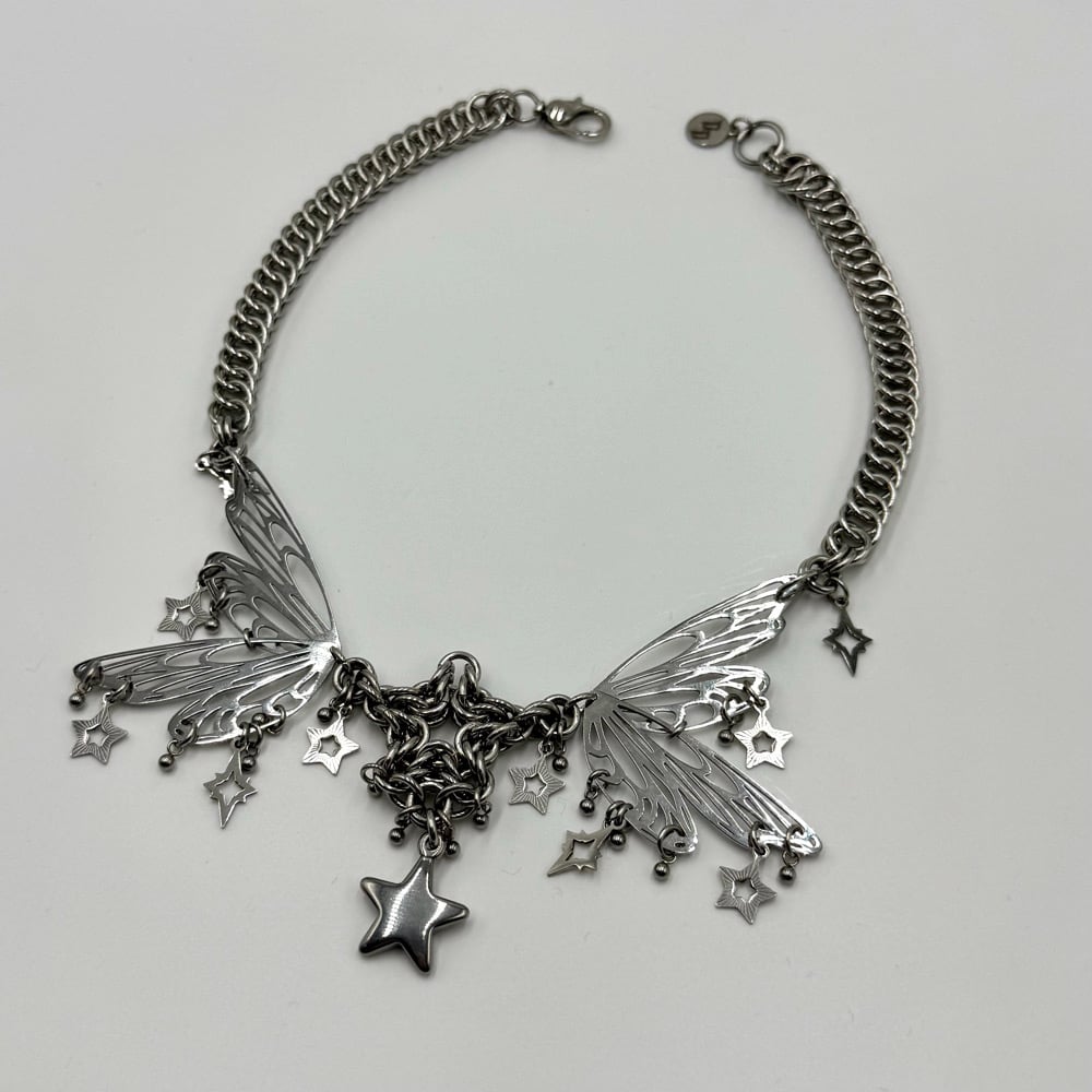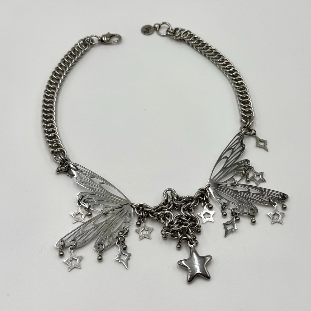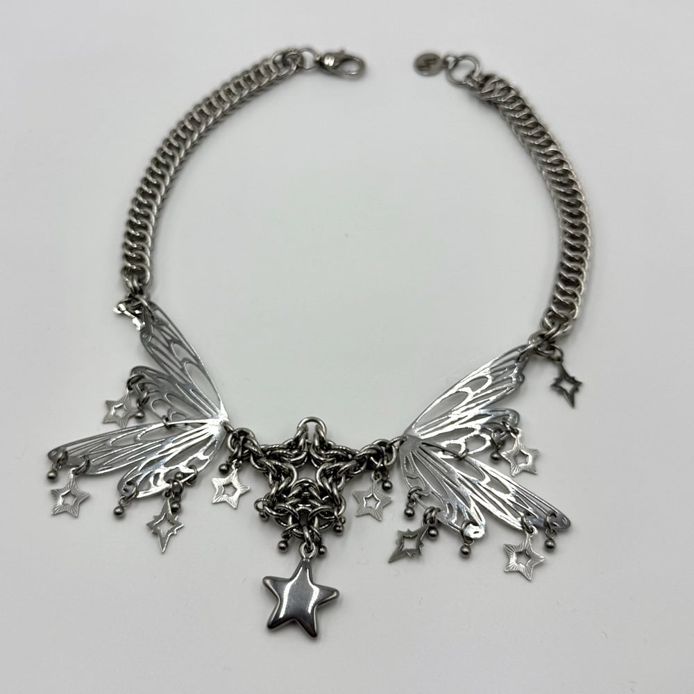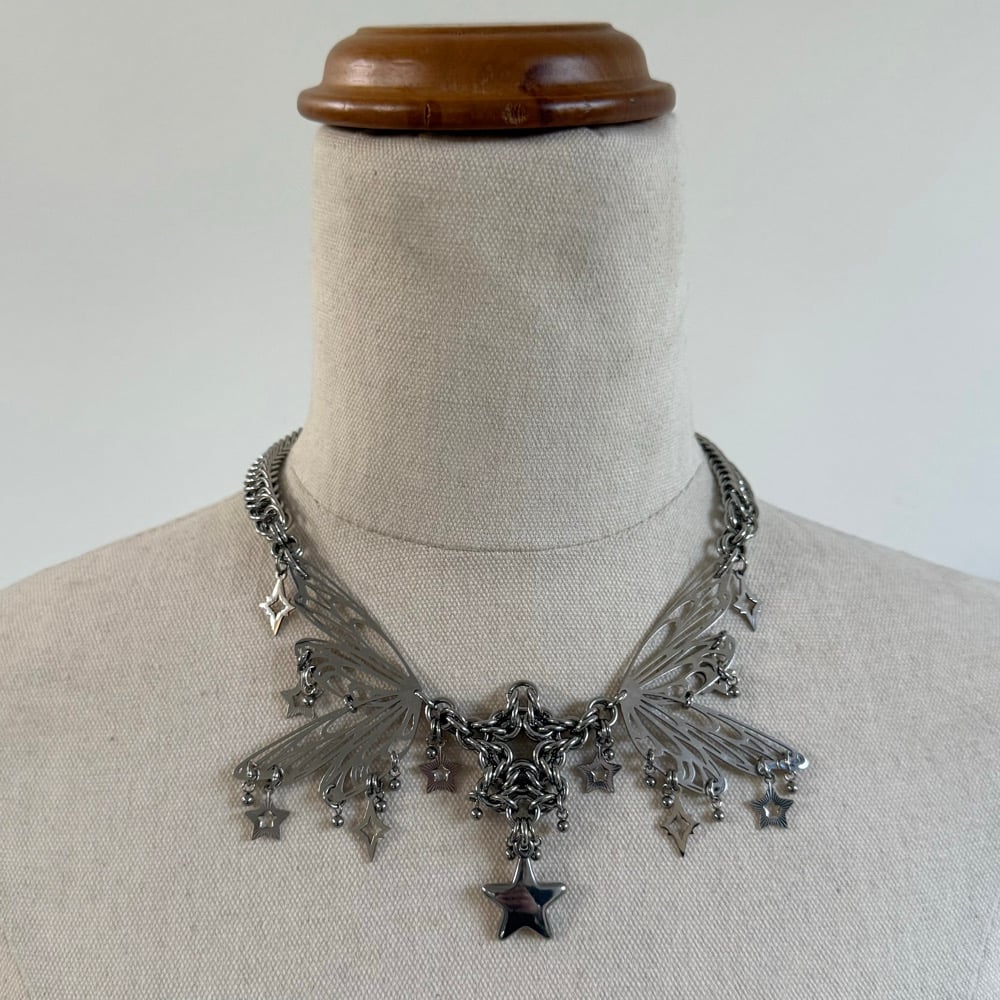 The A Star is Born Necklace features stars on stars on stars, for the lovers of such. Featuring a handmade chainmaille star, half persian 4 in 1 chainmaille, butterfly wings, star pendant, and various charms.
