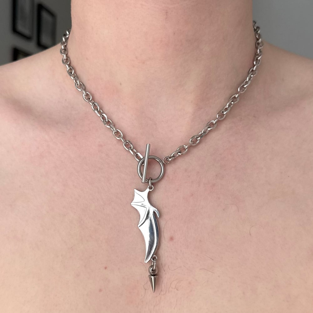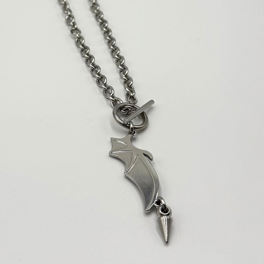 The Batstruck Necklace is an affordable piece that features a gorgeous bat wing and spike pendant. It is a gorgeous, simple staple piece