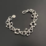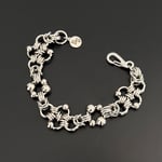 This bracelet is made from 100% stainless steel, and has a maximum length of 19cm - although smaller depending on where it’s clasped.