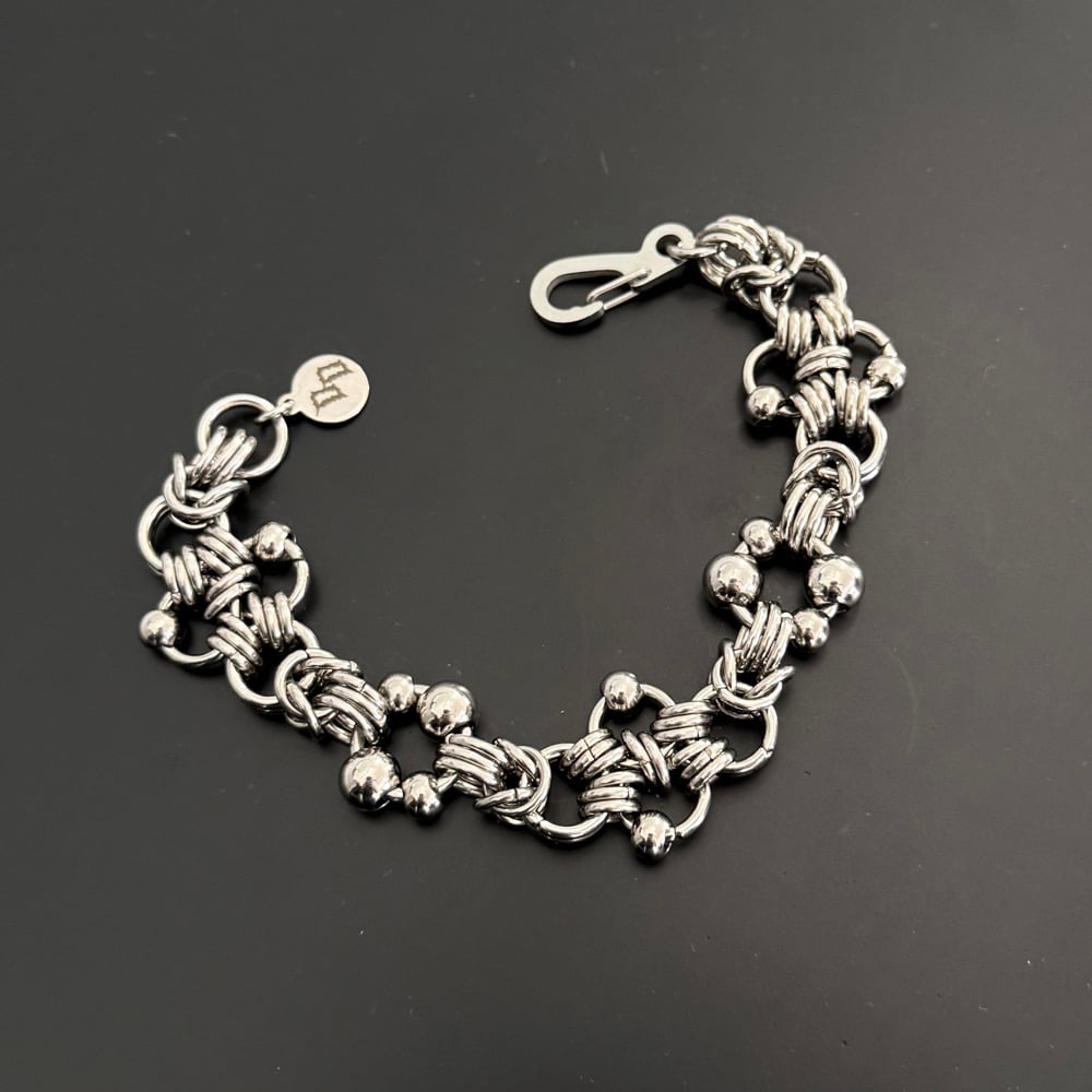 The Byzantine Bells Bracelet is both simple yet maximalist at the same time, featuring an array of stainless steel balls that jingle around and chainmaille that’s fun to fidget with.