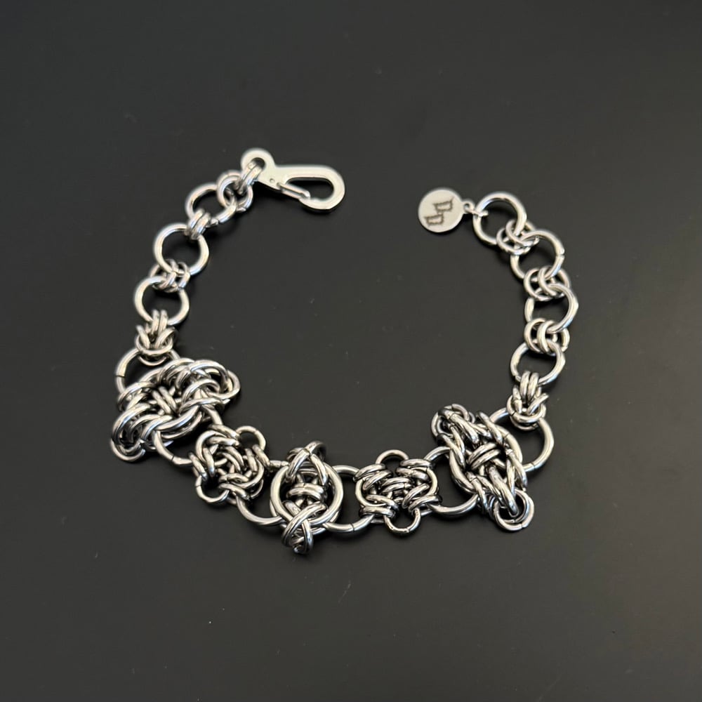 The Celtic Bloom Bracelet features Byzantine Bloom and Celtic chainmaille weaves, forging a fun whimsical piece.