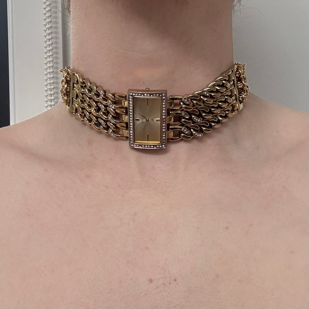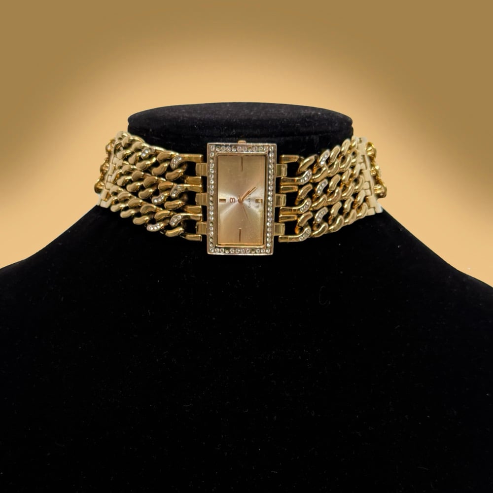 The Delicate Diamontes Watch Choker is the perfect gold statement piece. Featuring one of my favourite watches that has diamontes on it!