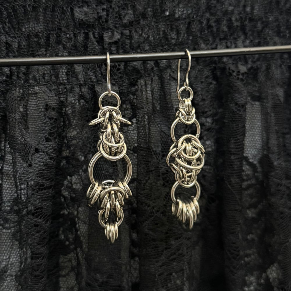 These earrings were handcrafted from chainmaille scraps, unused cut-offs, and pieces from unfinished projects!