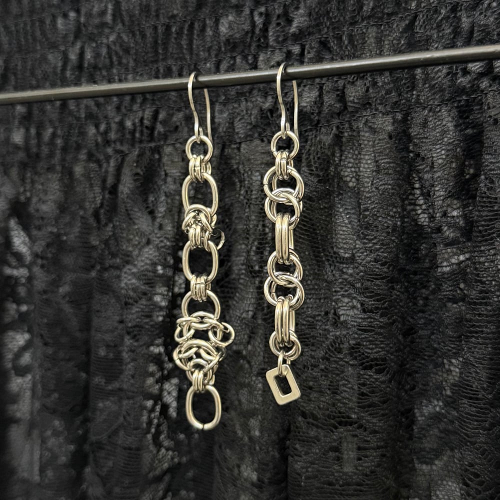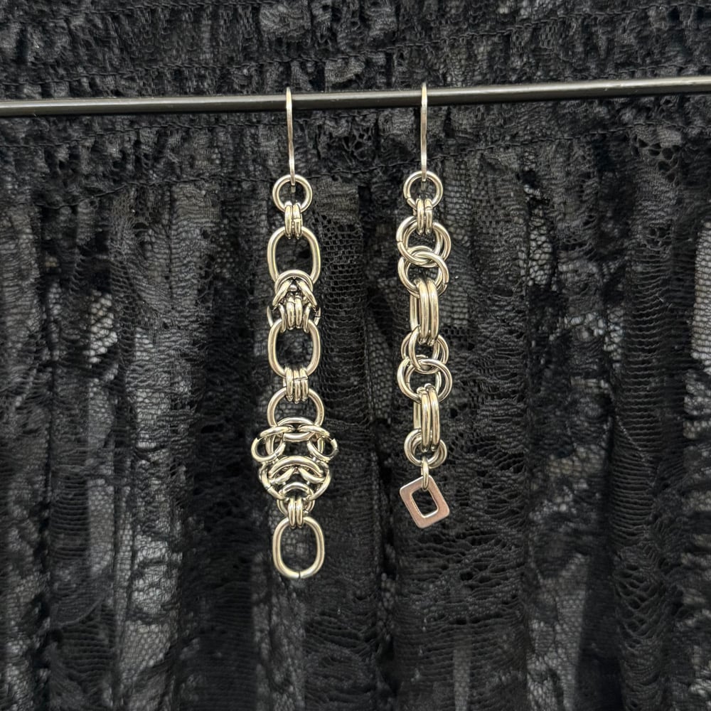 These earrings were handcrafted from chainmaille scraps, unused cut-offs, and pieces from unfinished projects!
