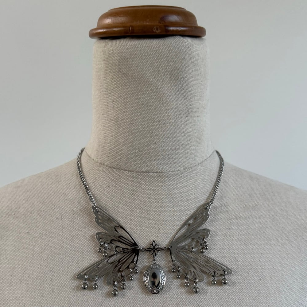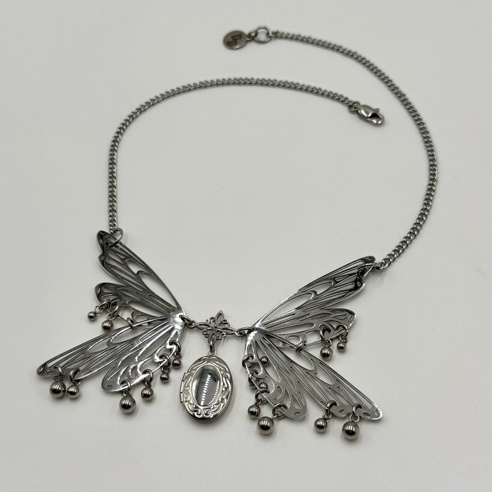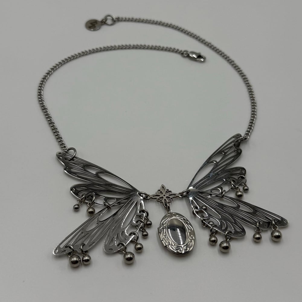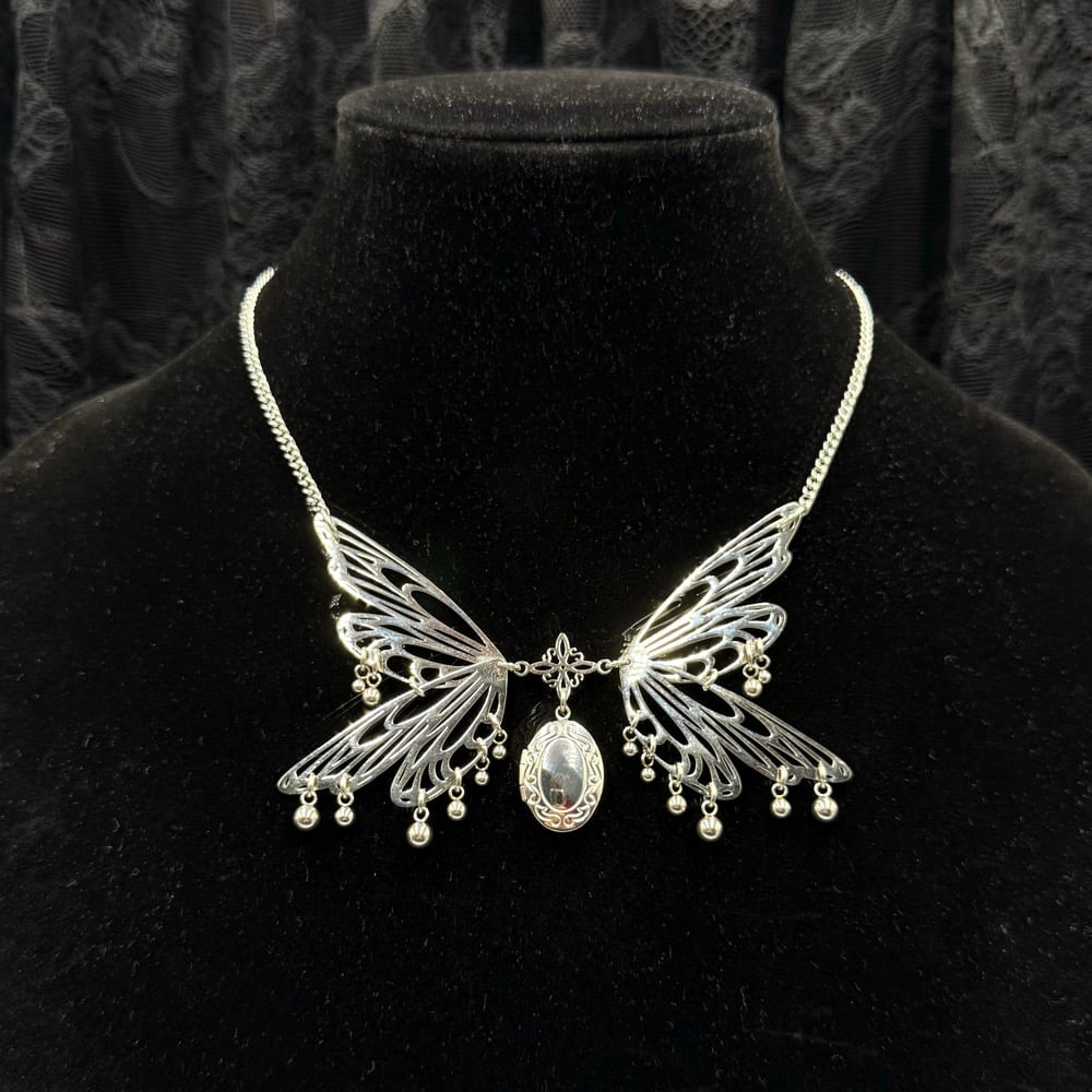 The Miss Locket Necklace is a dainty butterfly piece that features a working locket, curb chain, and various ball charms.