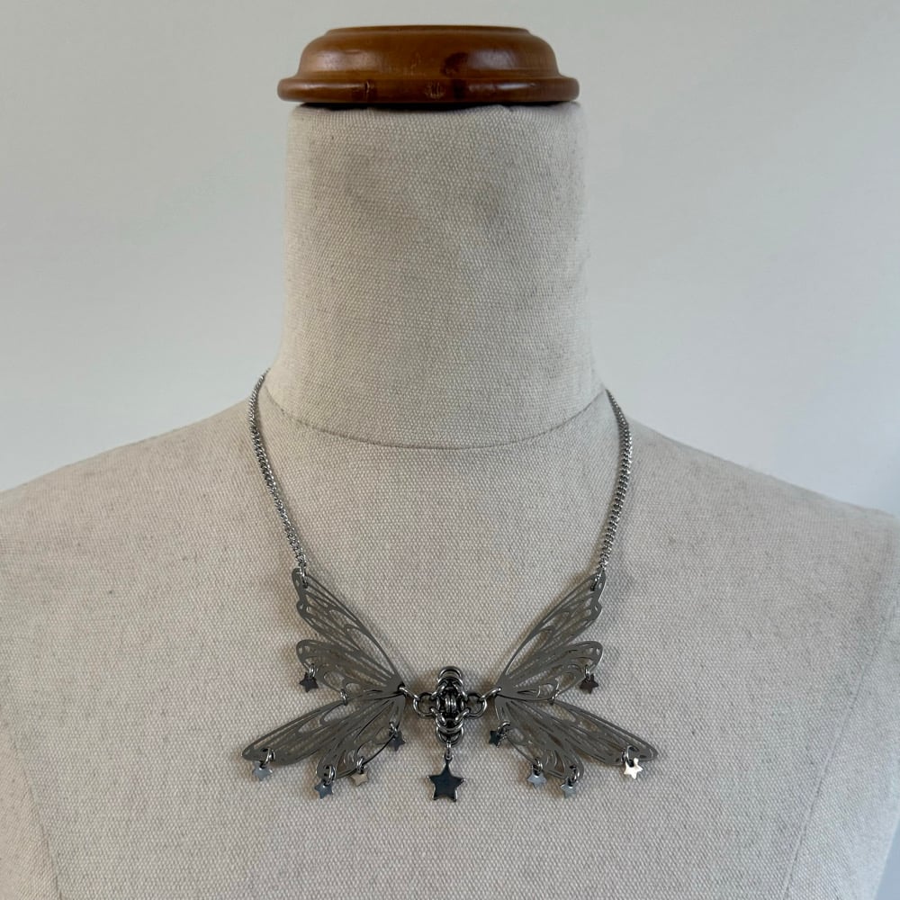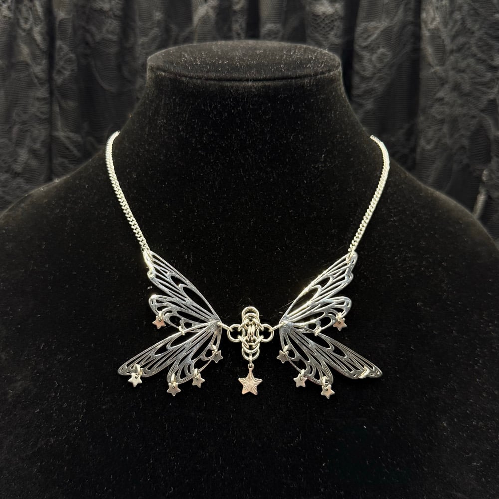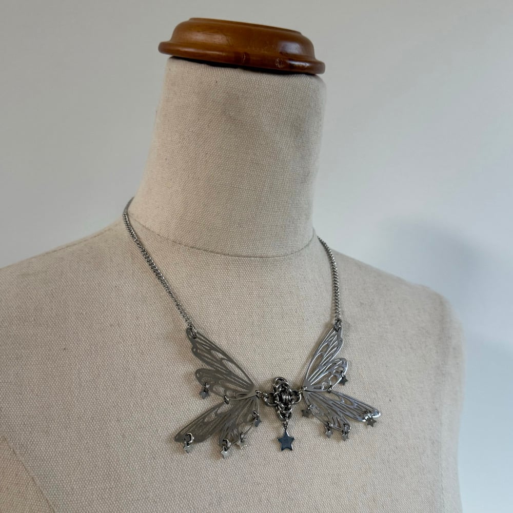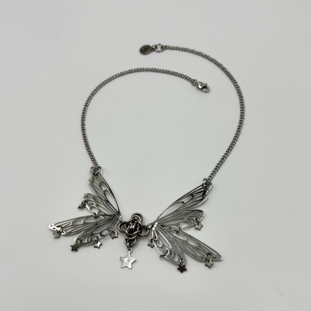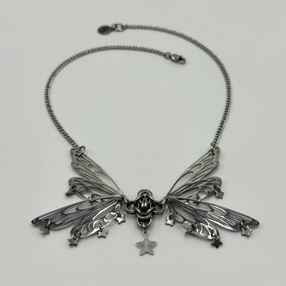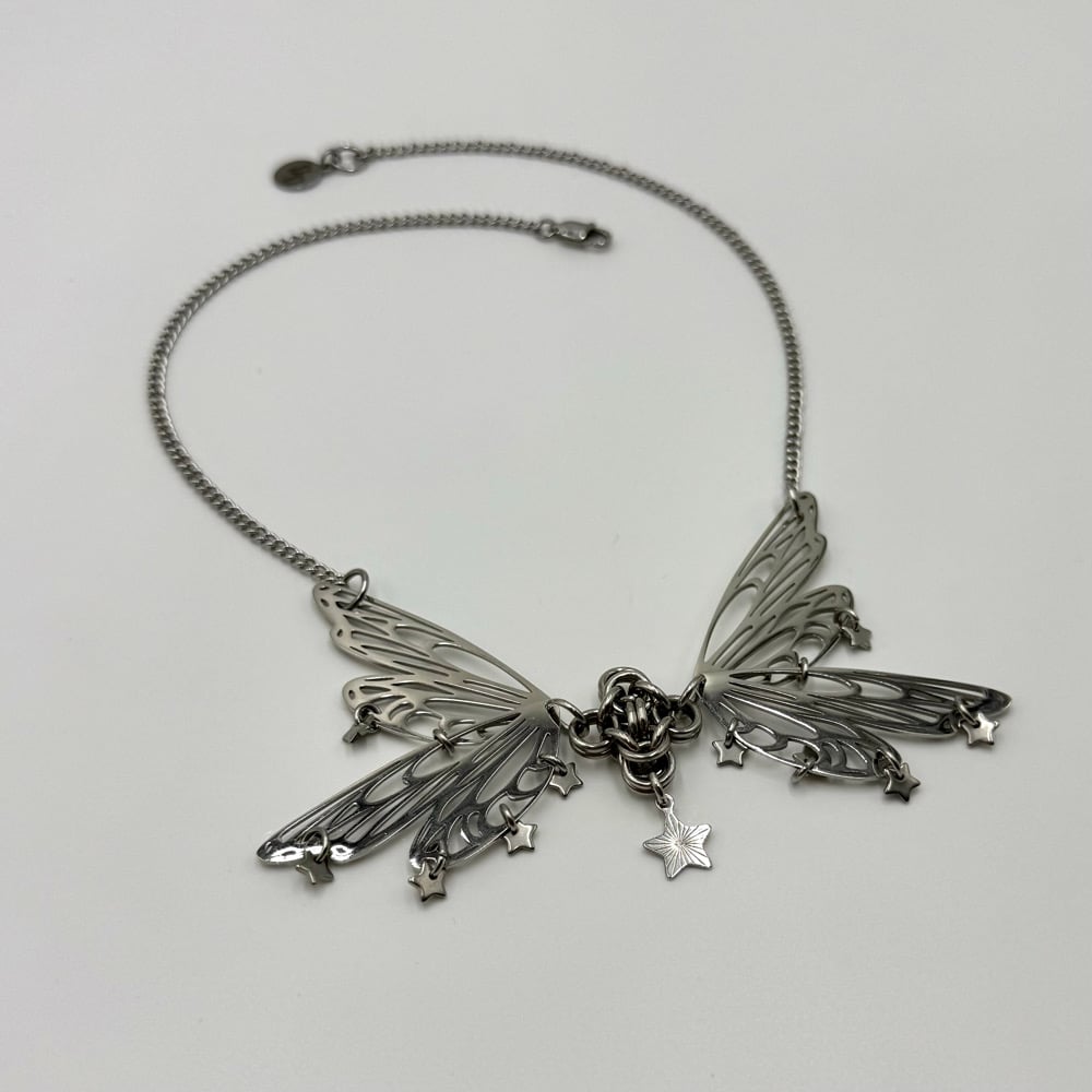 The Miss Star Necklace is a dainty butterfly piece that features star charms and delicate curb chain.