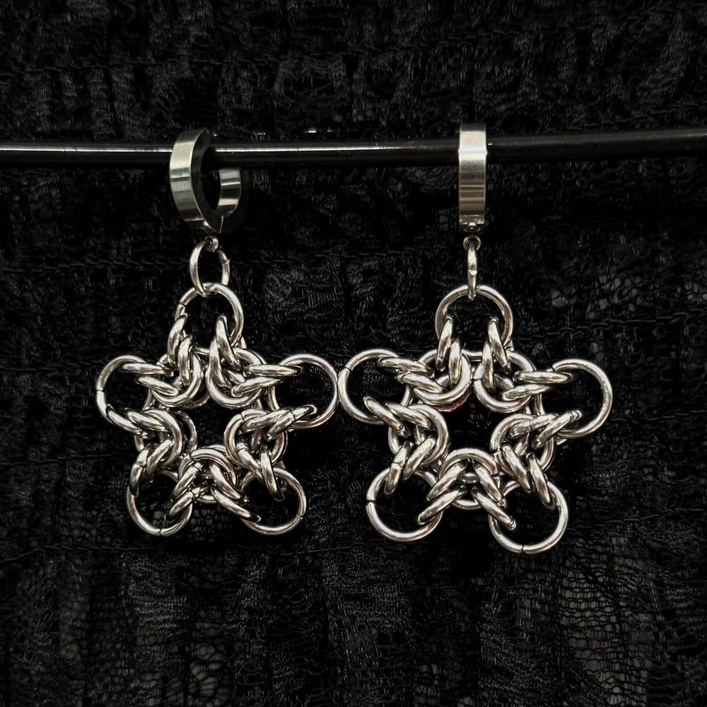 The Silver Star earrings feature handmade chainmaille stars and are made of 100% stainless steel!