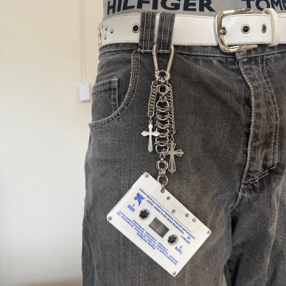 The Siri Play Bach Keychain features stainless steel chainmaille and a vintage Bach cassette tape.