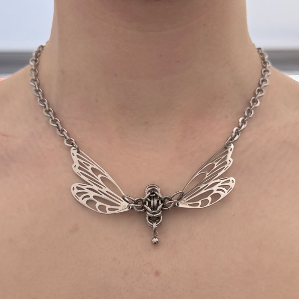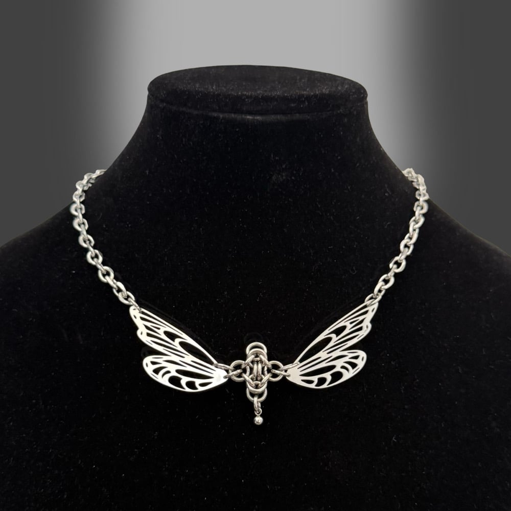 The Winged Wings Necklace features two butterfly wings and some dainty chainmaille - a gorgeous blend of both dainty and disast3r! Featuring 100% stainless steel materials.